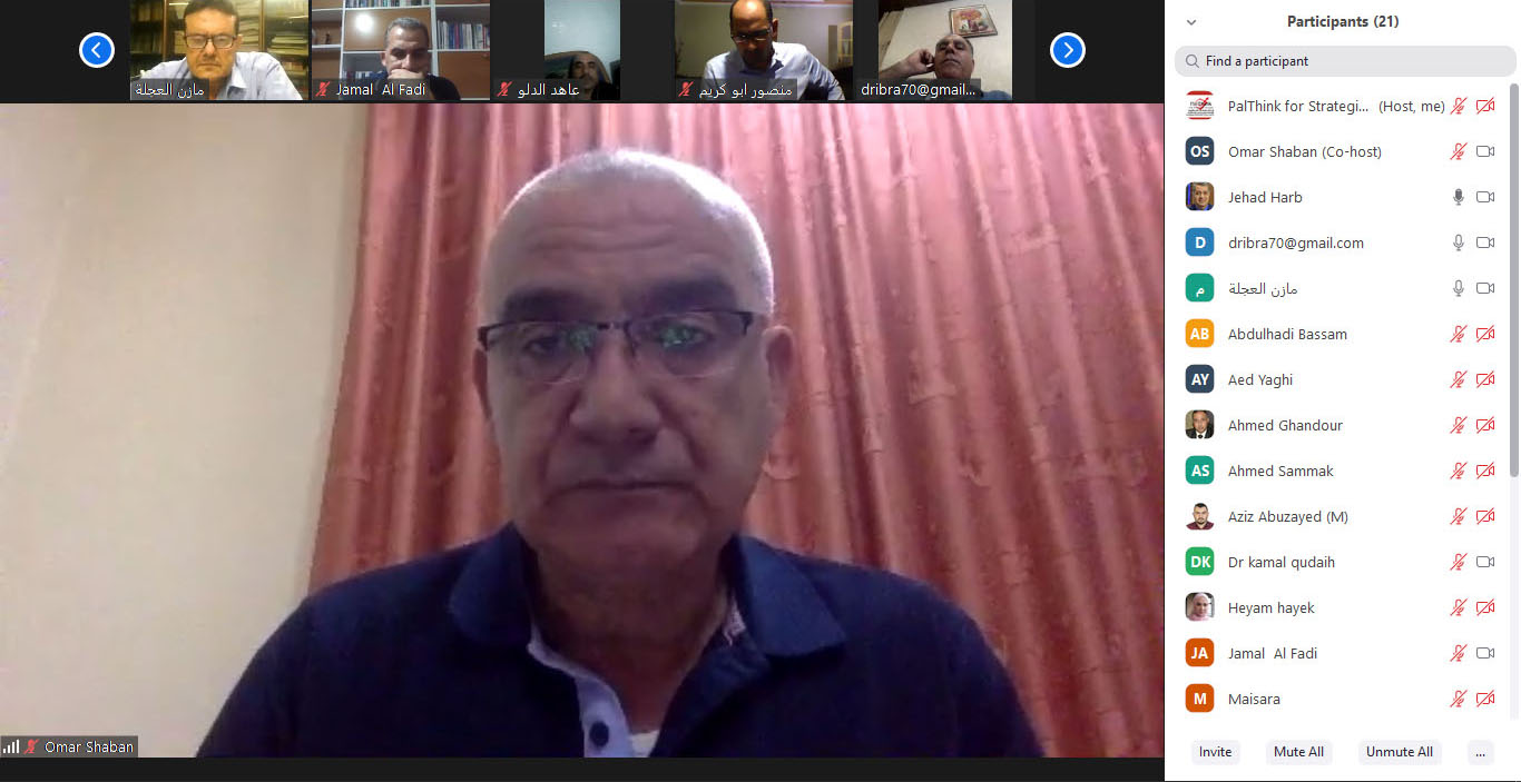 نظمت بال ثينك للدراسات الاستراتيجية، جلسة حوارية عبر برنامج الزوم حول ورقة سياساتية بعنوان “بعد ثلاثة عشر عاما على الانقسام: بدائل مرحلية بين الوحدة والانفصال” للباحث جهاد حرب وذلك ضمن برنامج “حوار في مقالة” الذي أطلقته المؤسسة لإثارة النقاش حول قضايا فلسطينية هامة مع مجموعة من المختصين في الشأن السياسي والاقتصادي.