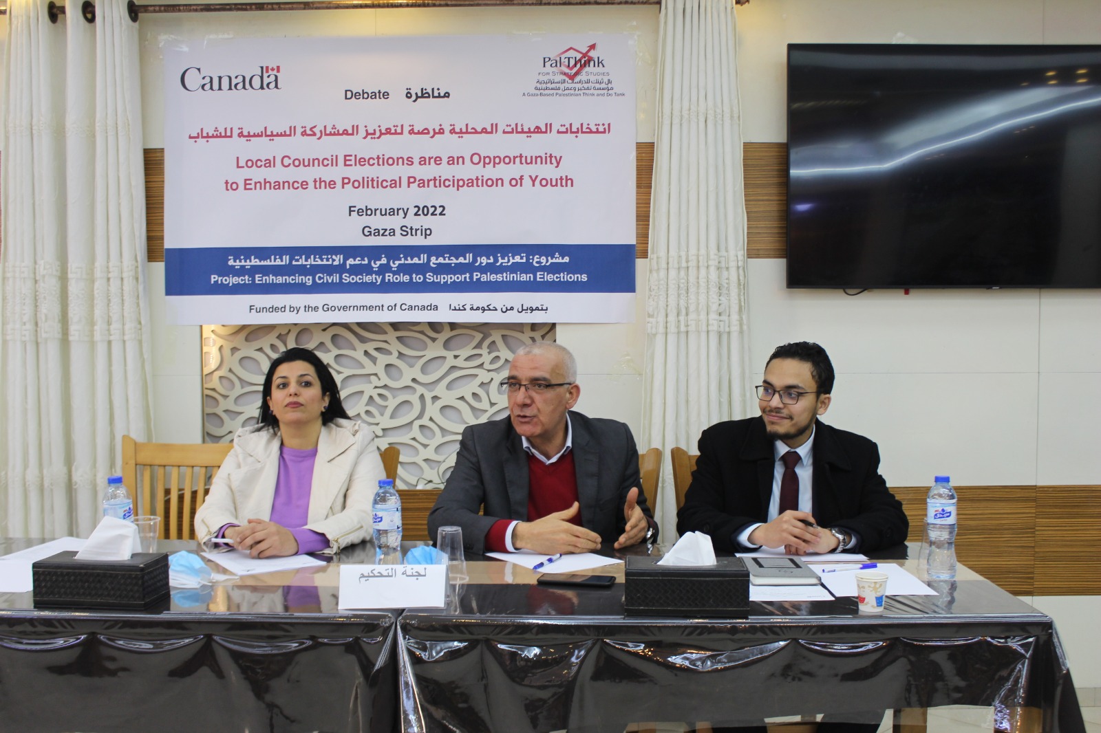 نظمت مؤسسة بال ثينك للدراسات الاستراتيجية مناظرة شبابية بعنوان “انتخاب الهيئات المحلية فرصة لتعزيز المشاركة السياسية للشباب”، ضمن مشروع “تعزيز دور المجتمع المدني في دعم الانتخابات الفلسطينية”، بتمويل من حكومة كندا.