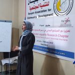 كان أحد تلك اللقاءات في جمعية النجاة الخيرية في محافظة خانيونس بعنوان” المشاركة السياسية للمرأة”، تناول اللقاء اهم الجوانب التي يمكن ان تشارك فيها المرأة لتنمية المجتمع وعلى رأسها المشاركة السياسية ومساهمتها في صنع القرار والذي يعتبر جزء لا يتجزأ من نظرية الديمقراطية وأهم الادوات لتحقيقها، كما تم الحديث عن الحقوق السياسية والاقتصادية والاجتماعية للمرأة، ومناقشة الإطار القانوني لمشاركة المرأة السياسية، كما تناقش الحضور حول التحديات التي تواجه مشاركة المرأة ودور مؤسسات المجتمع المدني والجهات ذات العلاقة بتعزيز مشاركة المرأة السياسية.